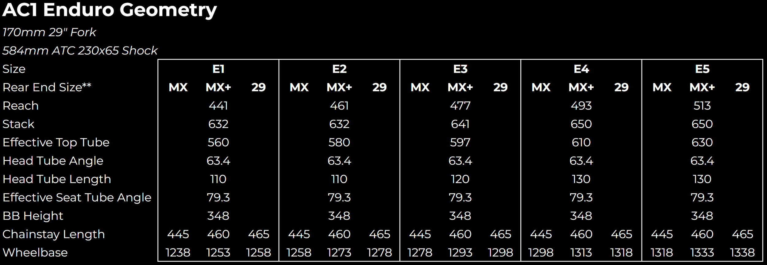 Enduro AC1 – Tech Specs